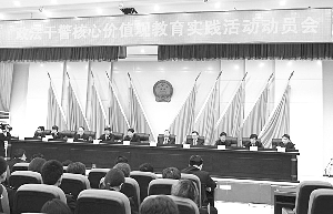 本报讯 (记者 张兰华 通讯员 张婧)3月29日,衡水市中级人民法院组织召开“政法干警核心价值观实践活动再动员”大会,并邀请市委政法委活动督导组出席会议。会上,市直督导组组长郭金强,市中院党组书记、院长周廷生讲了意见,党组副书记、常务副院长田凯山主持会议,党组成员、政治部主任郭佩珊宣读了活动实施方案,全院干警参加了会议。