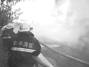 左图为消防队员正在紧张地灭火。 本报记者 刘彬 摄