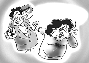 她找过妇联和派出所,儿女们也相劝过。对来自任何方面的劝说,老头子都表面应承,实际上却屡教不改。以前,她从没想过离婚,她认为,对于女人来说,离婚不是光彩的事儿,而且她认为都一大把年纪了,老夫老妻几十年了,好歹凑合几年也就到头了。可是,每当他在家里闹得惊天动地时,她便痛苦不堪,她便一次又一次想到了离婚,最后只好到法庭提出离婚。