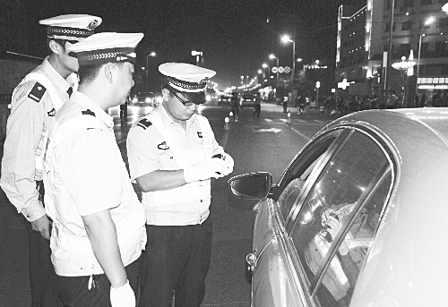 连日来,沧州市公安交警二大队加大夜晚的交通秩序管控力度,在辖区主要路段路口设立检查点,对酒后驾车、无证驾驶、无牌无证等严重交通违法行为进行集中整治,杜绝事故隐患,预防道路交通事故的发生,为广大市民提供安全畅通的道路交通环境。图为民警在进行夜查。
