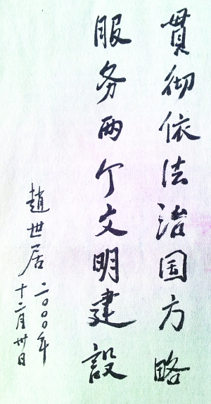 ▲ 省司法厅党委书记、厅长李益民题词