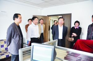 2011年4月15日,河北日报报业集团党委书记、管委会主任、社长郭金平(右二),集团党委委员、管委会副主任、副社长、总经理张英军(左一),集团党委委员、管委会副主任、副社长娄珍须(右一)来到报社检查指导工作。