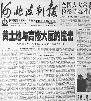 当时,互联网的应用不像现在这么普及,报道中涉及资料的收集工作费了不少功夫。每篇稿件的初稿出来后,大家都字斟句酌,反复修改。当时还都是手写稿件,每页稿纸上都布满了大家不同笔迹、不同颜色的修改痕迹。记得第一篇稿件出来后,大家逐一修改,仍感觉标题不够理想,我们向当日值班副总编张华楷求助,“黄土地与高楼大厦的撞击”成了最终的见报标题。