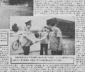 1996年8月,我和同事王杰、宋法绪在滦县公安交警大队采访。采访中,我们突然听说刘金国要到滦县。原来,“北戴河沿线”暑期工作即将结束,他要看望、问候一线民警。他从北戴河启程,沿线见岗就下车,和每一位执勤民警握手,致以问候。我提前到滦县境内的交通岗等候,拍摄他问候民警的情景。刘金国当时穿一身夏装警服,头戴大檐警帽,炎热中,着装一丝不苟。他微笑着和岗上执勤的民警握手、问候、感谢、嘱咐,十分随和,这些我都用相机记录了下来,至今我手中还存有几张当时胶卷时代的照片。他当时的行程是典型的“刘金国式”:随行一辆车、一名司机、一名工作人员。有人告诉我,车厢里还备有一箱方便面。