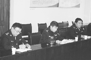故城县公安局召开党委扩大会,结合公安工作实际,认真学习党的十八大会议精神。党委书记、公安局长李金禄(上图,中)在会上强调:第一,要把学习贯彻党的十八大精神作为今后一段时期的最为重要、最为紧迫的政治任务。第二,要以党的十八大的召开为契机,奋发有为、扎实工作,不断取得新进步,创造新辉煌。第三,要把学习贯彻党的十八大会议精神与巩固党的政权、服务经济发展、保障人民安居乐业结合起来。