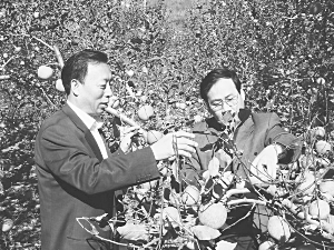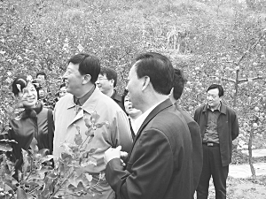 ⑥北京奥组委专家到岗底考察富岗苹果生产基地。