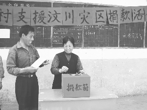 ③汶川地震后,岗底村民踊跃为灾区捐款。