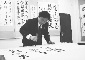 书法是宋晨的业余爱好。为搞好法院文化建设,他把近几年来收藏的大量中国现代书画名家书写的关于古今中外法律格言的书法作品拿出来,从中精选出中国书法家协会理事以上人员的作品60余幅,悬挂在法院的楼道里,同时他还邀请县内知名书画家,举办了一次以“法道”为主题的书画展,构建起艺术与内容相统一,美感与教育相辉映,独具特色的法院文化氛围。这种做法不仅受到了全院干警的喜爱,还引起了邢台中院、省高院领导的重视,他们纷纷带人前来参观学习。