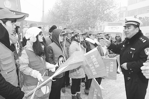 近日,新乐市交警大队在全市范围内开展了以“遵守交通信号,安全文明出行”为主题的交通安全日宣传活动,收到了良好效果。本次活动,该大队共出动宣传警力90余人,机关选派干部及交通安全志愿者80余人,发放各类宣传材料25000余份,悬挂布置标语60余条,营造了浓厚的宣传氛围。 李峰哲 摄