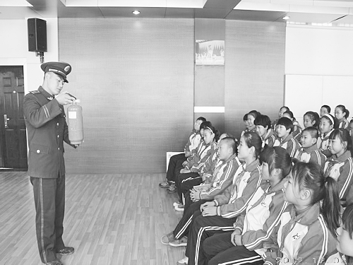 12月5日,石家庄市裕华消防大队的官兵走进农民工子女较集中的南王小学,为农民工子女送上了一堂消防安全、心理健康主题爱心课,并将大量的消防宣传资料送到孩子们手中,叮嘱他们自己在家时要注意安全,不要乱用火、用电、用气,保护好自己的人身安全。本报记者 赵媛媛 摄