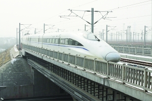 8节车厢满载的是中外记者和铁道部各方面的专家,列车开出车站仅仅几分钟时间,车厢内显示屏就显示车速已经超过了300公里。透过车窗,车外的景物飞速地向后移动,却没有眩晕的感觉。车厢平稳,放在托盘上的水杯内的水只是微微地有些颤动,一些人甚至将一元硬币竖着立在了桌子上。