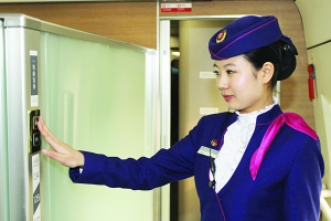 在车厢里,记者看到确保乘客安全的各种设施随处可见,每个包厢和卫生间的门都改成了推拉门。残疾人专用卫生间都是无障碍的,大门开合全部通过按键,电子控制。列车员说,这样的卫生间门比普通的门要安全许多,特别是在高速运行时,这样的推拉门不会因为没有关好而反复开合碰伤乘客。为了防止乘客打水时被烫伤,记者发现车厢里的饮水处,热水开关也换成了电子控制的。