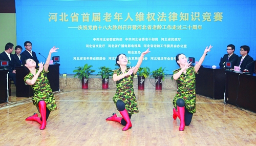 12月27日下午,“河北省首届老年人维权法律知识竞赛”在石家庄举行。此次大赛选题多是与老年人生活、投资理财相关的法律知识,从老年人平时容易忽略的事情和生活细节入手,提醒广大老年人维护自身合法权益。图为参赛选手在间隙时间表演节目。