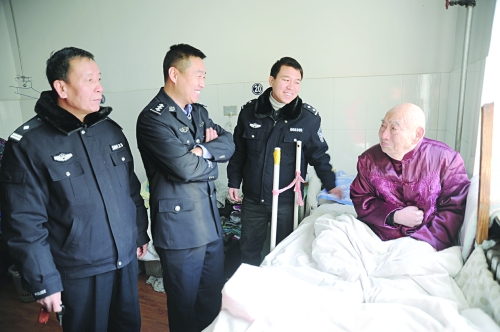 84岁的王占财是位抗美援朝老军人,去年10月,老人的医疗保险和住房公积金等问题遇到了麻烦。按规定,办理各种费用支取都需要二代身份证,而老人的第一代身份证早已作废,办理二代身份证需要到5公里外的任丘市行政大厅。可老人卧病多年,无法到行政大厅办理。任丘市公安局户政科科长边遗伟、指导员王静得知后,日前带领户籍民警来到华北油田采油一厂医院,在病床前为老人拍摄了二代身份证照。老人用颤微的声音连声说“谢谢孩子们,你们是好孩子啊!”