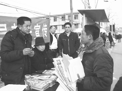 为加强县域内的生态环境和发展环境建设,武强县司法局领导和工作人员深入集市、农村、企业、学校,深入开展法治宣传活动。图为近日工作人员在武强镇农村进行宣传。