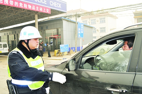 涿州市公安局自2月25日正式启动环京检查站和进京卡口“护城河”工程后,于3月1日提升勤务等级,增派民警上岗执勤,并为治安检查站配备了科技侦查防护设备。全体参战民警按照方案要求,凡携带易燃易爆物品、管制刀具等物品的,一律没收。图为涿州挟河检查站民警正在严格进行检查。