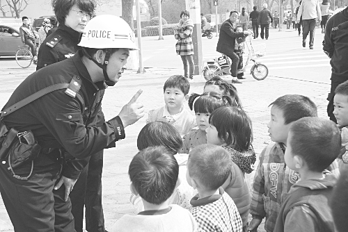 近期,全国各地发生儿童走失案例较多,为提高儿童特别是幼儿的自我保护意识和对事物的辨别能力,减少幼儿走失、被拐卖、被伤害案件的发生,石家庄市公安局新华分局西焦警务站与省七幼建立了长期共建关系,定期给老师和孩子们讲解自我保护常识。图为省七幼的15名孩子在老师和部分家长的带领下,来到西焦警务站参观,民警用通俗的话语告诉孩子们如何自我保护。解伶伶 摄