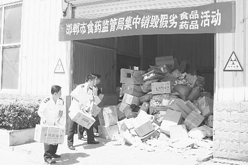 近日,邯郸市食药监局在市医疗废物无害化处理有限公司,组织开展了集中销毁假劣药械、保健食品和化妆品活动。此次集中销毁活动,共销毁近年来查获的假劣药品、医疗器械、保健食品和化妆品12998余种,36864盒(瓶),货值金额达13.86万余元。
