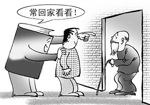 此次新修订的《中华人民共和国老年人权益保障法》把“常看望老人”写入法律,既给了老人一份法律权利,也给了儿女一份法律义务,这对人们的道德无疑起到了引导和匡正作用。一项网络调查问卷显示,53.6%的网友对“不常回家看望老人将属违法”表示支持,认为此举有助督促人们多陪伴老人,体现了对老人的精神关怀。