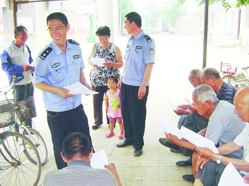 辛集市公安局认真查找自身工作存在的问题和不足,近日,该局面向社会各界开展了“我为公安献计策”活动,广泛听取促进公安工作的建设性意见和合理化建议,广泛征集推动公安工作改革创新的好思路、好方法。图为该局新垒头派出所民警在向辖区群众发放意见建议征集表。