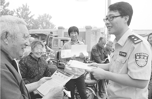为进一步提高广大群众的安全防范意识,霸州市公安局多次组织民警深入社区、村街、校园,开展夏季治安集中宣传活动。图为6月30日,霸州市南孟派出所民警在辖区集市发放夏季治安防范宣传单。