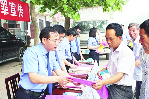 为预防未成年人犯罪,隆尧县人民检察院积极开展“社会关爱、法律引导,走进未成年人心灵”法律宣传服务活动。图为该院检察长霍庆泽正在向过往群众讲解有关法律知识。