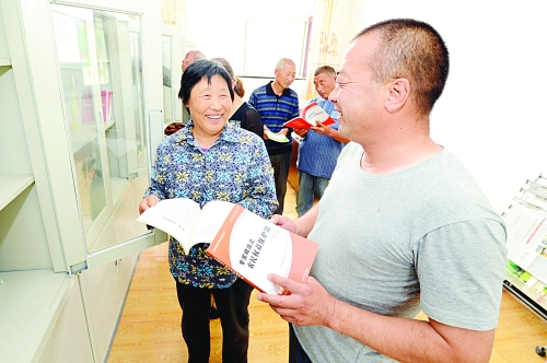 唐山市乐亭县以农家书屋为依托,积极探索农村普法工作新形式。该县绝大部分农家书屋配备了涉及宪法、刑法、民法、合同法、婚姻法、继承法等方面的法律书籍供群众阅读,部分农家书屋还和当地司法部门开展共建,具备了法律服务联系点、矛盾纠纷调解室的功能,成为农村普法用法工作的重要平台。图为该县乐亭镇韩坨村村民在农家书屋学习讨论法律知识的情景。李媛 摄