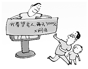 新《老年人权益保障法》自7月1日起施行,不少做子女的都感叹“常回家不好实现”。这几天,淘宝上已经陆续有店家推出了“代看望老人”系列服务。一家江西的网店标价看望老人两天收费3000元,全程录制视频,尽量满足客户需求,交通费、差旅费另算。不少人认为,这种服务挺新潮的,但有更多人并不认同。 王铎 作