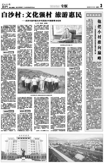 党的十七大以来,白沙村党支部、村委会把文化强村、旅游惠民作为强村富民的一条路径,用建设新农村取得的新成效、出现的新面貌作为特色和亮点,同时,把农村传统文化和现代文化挖掘、整理融入其中,并不断开发创新,吸引着社会各界群众,走上一条转型发展、旅游惠民之路。