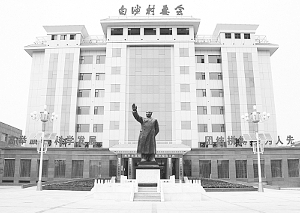 白沙村三面环山,村庄坐落在一块盆地中。村口“朝阳湖”碧波荡漾,鱼翔浅底;“怡心园”千树吐翠,鸟语花香;“敬贤园”倚湖就势,松柏林立、郁郁葱葱,“岳母刺字、苏武牧羊”等花岗岩制作的雕塑坐落其中;1万平方米的“民心广场”假山瀑布、音乐喷泉、小桥流水、伟人铜像,气派而别致;6300平方米的文化宫里歌厅、舞厅、电影厅、演练厅、图书室、阅览室、健身房一应俱全。高九层、建筑面积8085平方米的村委会综合办公楼矗立在广场正北,内有村民服务大厅、贵宾接待大厅、有线电视台、监控中心、警务室、党员干部远程教育播放站、群众工作室、民事纠纷调解室、档案室、荣誉室、村民接待室和200个座位的中型会议室,楼顶是空中花园。