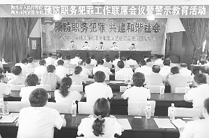 对于做好联合预防职务犯罪工作,刘金星要求,一要提高认识,增强做好预防工作的自觉性。要把预防职务犯罪工作作为深入实践科学发展观的重要内容,认清肩负的职责和重任,增强自觉性和责任感。二要强化领导,突出抓好宣教预防,突出抓好全程监督,突出抓好制度执行,突出抓好违法违纪案件的查办工作,确保各项预防措施落实到位。三要加强协作,充分发挥预防工作联席会议办公室的组织协调作用,坚持信息交流通报制度,合力促进预防工作取得实效。四是严守纪律,促使预防工作规范健康开展。检察机关要正确处理与预防单位的关系,做到“尽职不失职,到位不越位,帮忙不添乱”,使预防工作步入规范有序的法治轨道。要牢固树立“正人先正己”的意识,真正做到“自身正、自身净、自身硬”,树立良好的检察形象。