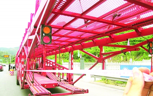 为预防重特大道路交通事故,高速交警鹰手营子大队加强对重点违法行为的查处力度。7月12日,执勤民警在承唐高速公路发现一辆擅自更改机动车外形的大型机动车。经过民警现场测量,该车长度远超正常长度。民警依照相关法规对该车驾驶员进行了处罚。臧鼎 摄