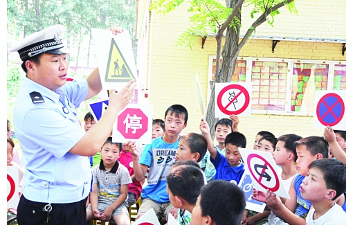 “这是停车让行标志,这是禁止人力车通行标志,那是步行标志……”。日前,沧州市公安交警二大队民警和交通志愿者来到辖区农村,组织当地小学生们开展暑期交通安全宣教活动。民警向学生们认真讲解了警告标志、禁令标志、指示标志的图案及其作用。民警和志愿者通过和学生们互动的形式,引起孩子们的极大兴趣。