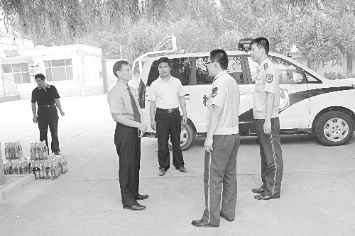 7月31日,河间市人民检察院副检察长钱雨昕一行带着慰问品到驻看守所武警中队进行“八一”建军节慰问。图为钱雨昕和武警官兵交谈。 张铁路 孙四启 摄