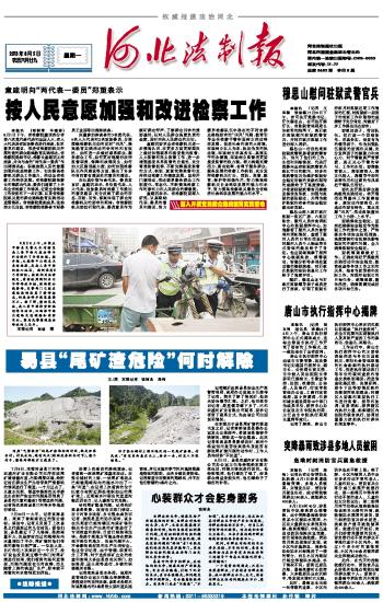 《河北法治报》(电子版)的一切内容(包括但不限于文字、图片、PDF、图表、标志、标识、商标、版面设计、专栏目录与名称、内容分类标准以及为读者提供的任何信息)仅供河北法治报、网读者阅读、学习研究使用,未经河北法治网及/或相关权利人书面授权,任何单位及个人不得将《河北法治报》(电子版)所登载、发布的内容用于商业性目的,包括但不限于转载、复制、发行、制作光盘、数据库、触摸展示等行为方式,或将之在非本站所属的服务器上作镜像。否则,河北法治网将采取包括但不限于网上公示、向有关部门举报、诉讼等一切合法手段,追究侵权者的法律责任。