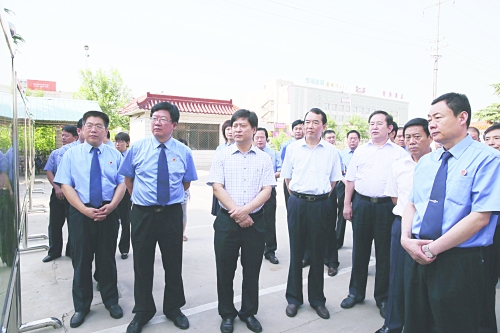 今年以来,沙河市检察院秉持“做就做好、干就干到极致”的理念,解放思想,开拓创新,各项工作取得了长足进展。日前,邢台市检察院组织全市基层检察院检察长在沙河市检察院就推进基层检察院建设进行了现场观摩。图为省检察院副巡视员李献春以及邢台市委常委、政法委书记安忠起,市人大常委会党组副书记、副主任孔祥友,副市长李全保,市检察院党组书记、检察长陈晓明等,一同观看并听取沙河市检察院以“成就梦想,再创辉煌”为主题的展板讲解。