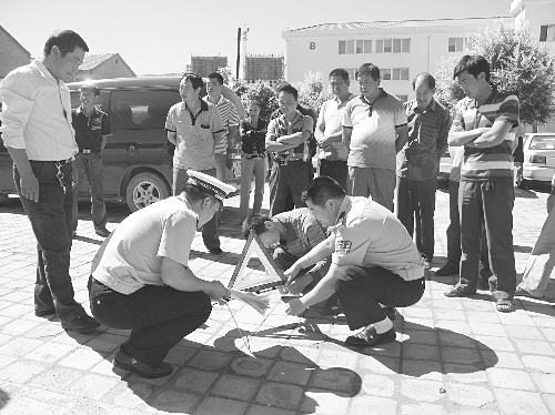8月31日,隆化县公安交警大队对隆化镇32名校车驾驶人进行了集中培训,并对32辆接送学生的车辆逐一进行了严格的技术检查,与32名驾驶人当场签订了《交通安全保证书》和《责任状》。图为民警在培训过程中就车载灭火器、三角牌的使用对校车驾驶人进行现场指导。 鹏志 李想 摄