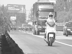 11时29分,民警又查获一名戴着头盔在高速公路上骑摩托车的年轻女子,民警通过扩音器劝停该摩托车,并对司机进行了安全教育,引导其驶离高速路,及时消除了安全隐患。 王旭超 摄