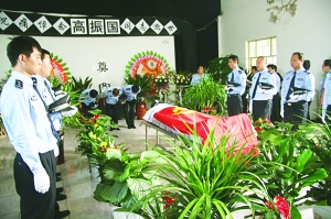 9月9日上午,涞水县殡仪馆陈列大厅内,因为工作极端劳累倒下的“80后”民警高振国躺在鲜花丛中,身上覆盖着庄严的党旗。在哀乐声中,他昔日的战友400多人围列在旁,聆听着高振国的生平事迹,许多人难以接受这残酷的现实,任凭热泪在脸庞上滚淌……