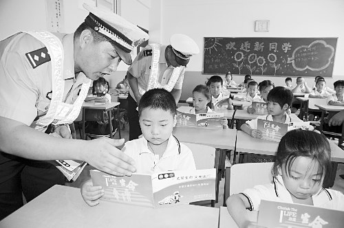 新学期开学后,沧州市公安交警二大队民警到辖区各中小学校及幼儿园,开展了交通安全宣传教育活动,向学生们宣讲交通法律法规和道路交通安全常识,提高小学生们的交通安全意识和自我保护能力,以保障自身交通安全。图为该大队民警在辖区中宇小学,向学生发放《交通安全画册》和道路交通标志图版,讲解交通安全知识。