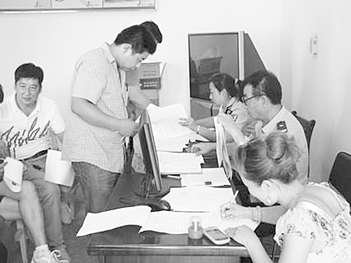 在新学期到来之际,高碑店市交警大队积极组织辖区幼儿园、学校负责人和接送学生车辆驾驶人,开展平安校园交通安全再教育活动。图为宣教民警与幼儿园负责人签订交通安全责任状。
