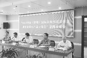 8月15日15时,邯郸市人民政府“2013中原(邯郸)国际采购经贸洽谈会暨五金机电产品交易会”新闻发布会,在邯郸市行政大厅举行,参加本次新闻发布会的代表有邯郸市政府有关部门的领导,邯山区有关领导,行业协会领导,交易会承办、协办单位的负责人,重点参展商代表,邯郸新闻媒体及五金机电专业媒体代表共计一百余人。