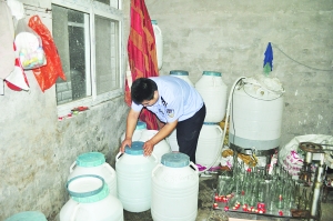 随后,在北京警方的配合下,办案民警依法对后某租住地进行了检查,当场抓获正在制造假酒的后某甲和后某乙,现场缴获假冒北京牛栏山陈酿1500余瓶、散装白酒30桶、各类假冒白酒标识2万余张、各类印章10余枚以及制酒工具1套。