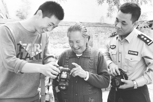 重阳节前夕 ,广平县公安局联合该县摄影家协会,为百名老人免费拍照。他们用手中的相机,记录下老人们幸福快乐的生活和微笑,并制作成片,送给老人们。图为广平县上坡村老人看到为自己拍摄的照片后,高兴得合不拢嘴。