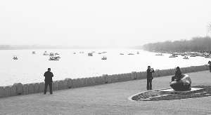 ①湖面上游船点点……