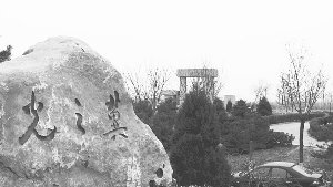 ②塔边的一块巨石上刻着“冀之光”。