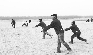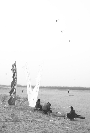 ③在路北的沙滩里,是风筝爱好者的乐园。