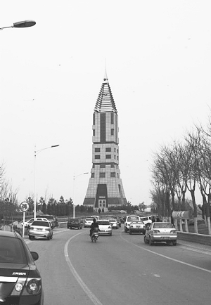④这个“冀”字形塔建筑成了汊河湿地公园的标志性建筑。
