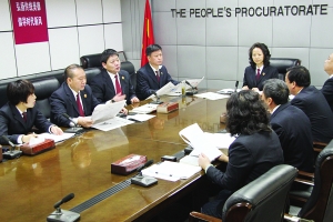 图为宋庆绵主持召开院党组扩大会,深入学习贯彻党的十八届三中全会精神,全面推进本院检察工作。 周乐 摄