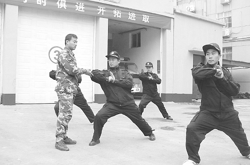日前,鸡泽县检察院组织该院全体司法警察开展了为期一周的封闭式冬季集训活动,旨在进一步提高法警队伍的战斗力,提升司法警察的执法能力和警务保障能力。图为受邀教练在指导法警训练。